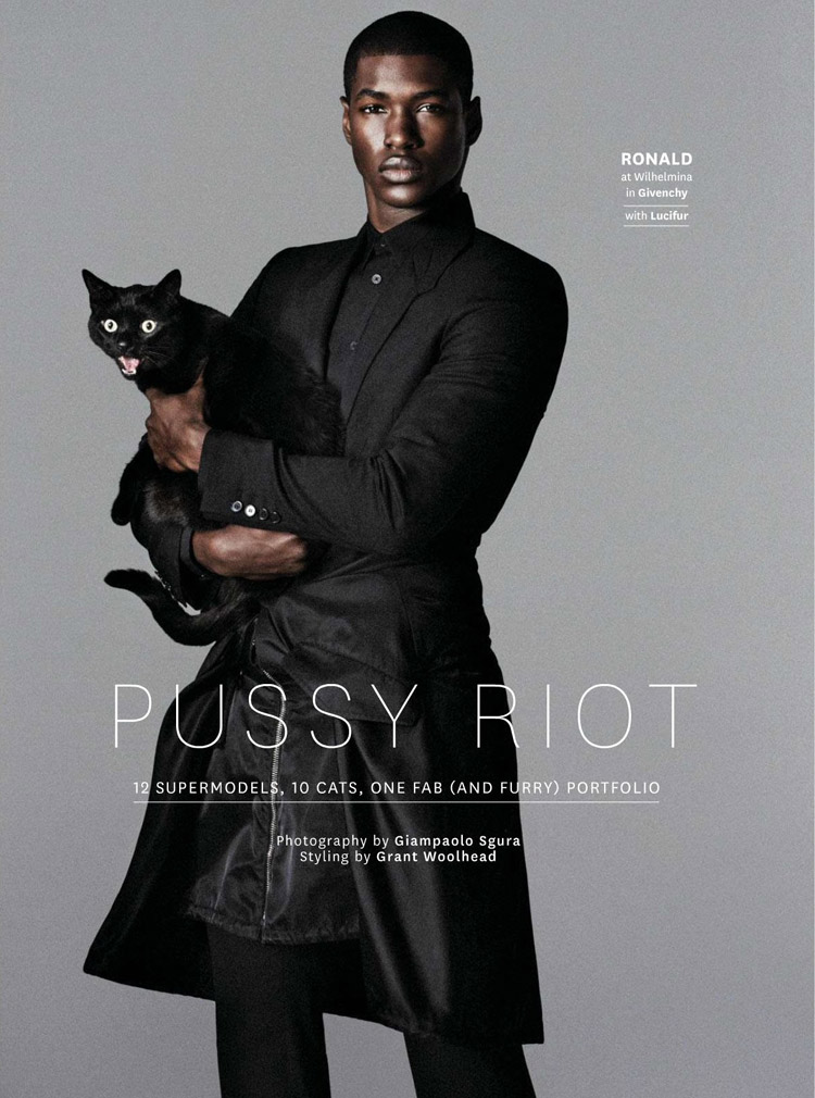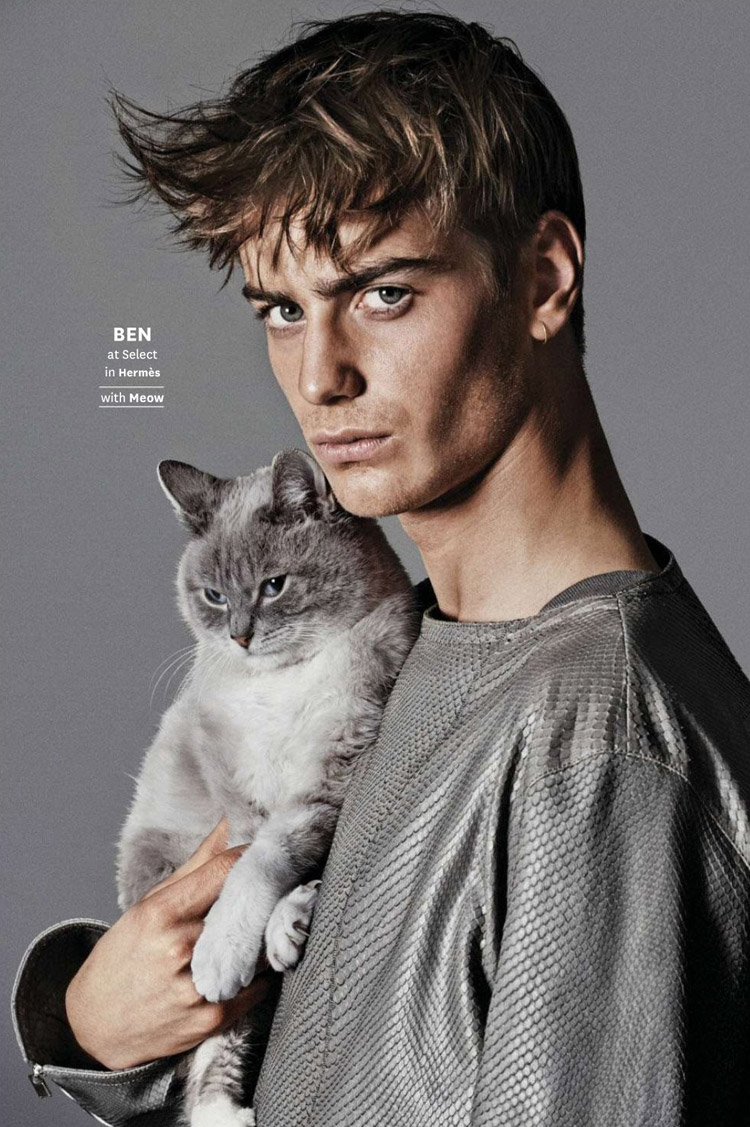貓似乎是女人的專屬寵物,然而你可曾想過貓和男人在一起其實也非常融洽,反而給男性帶來一種獨特的吸引力。時尚雜誌《OUT》最近就將這一猜想化作時裝故事,帶來一個名為“Pussy Riot” 的攝影特輯。 《OUT》此次請來了Arran Sly、Ben Allen、Chad White、Dae Na、Mikkel Jensen、Philipp Schmidt、RJ Rogenski、Ronald Epps 和Tom Bull 等14 位男模,他們穿上Hermès、Ermenegildo Zegna、Louis Vuitton 等大牌服飾,上演了一場別開生面的時裝故事。