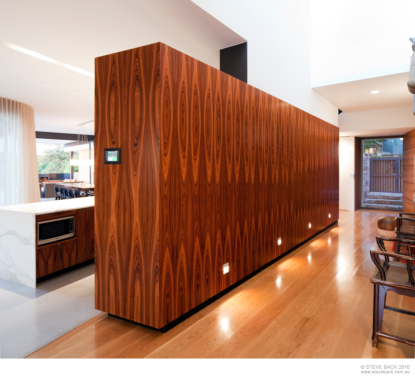 首先影響房屋設計的最大因素毫無疑問便是這條叫作Lane Cove River 的河流了,以現代化的設計建築風格打造的River House 擁有自然的輪廓與有機感的線條,建築外立面採用混凝土、磚塊及木材共同作用,而楔形細木工框的浮動設計令房屋俯視起來猶如一座小島。主要的生活區由城堡式的砂岩地下室牆壁連接彎曲的管子與廚房支點共同緊密結合而形成。這些空間的建立均為享受Lane Cove River 的全景打下了堅實而可靠的基礎。看來早晨起床面朝寧靜河面、晚間用餐望向滿天星斗以及邀請一大幫朋友來家裡開派對而不影響別人,都已經不再是空想!
