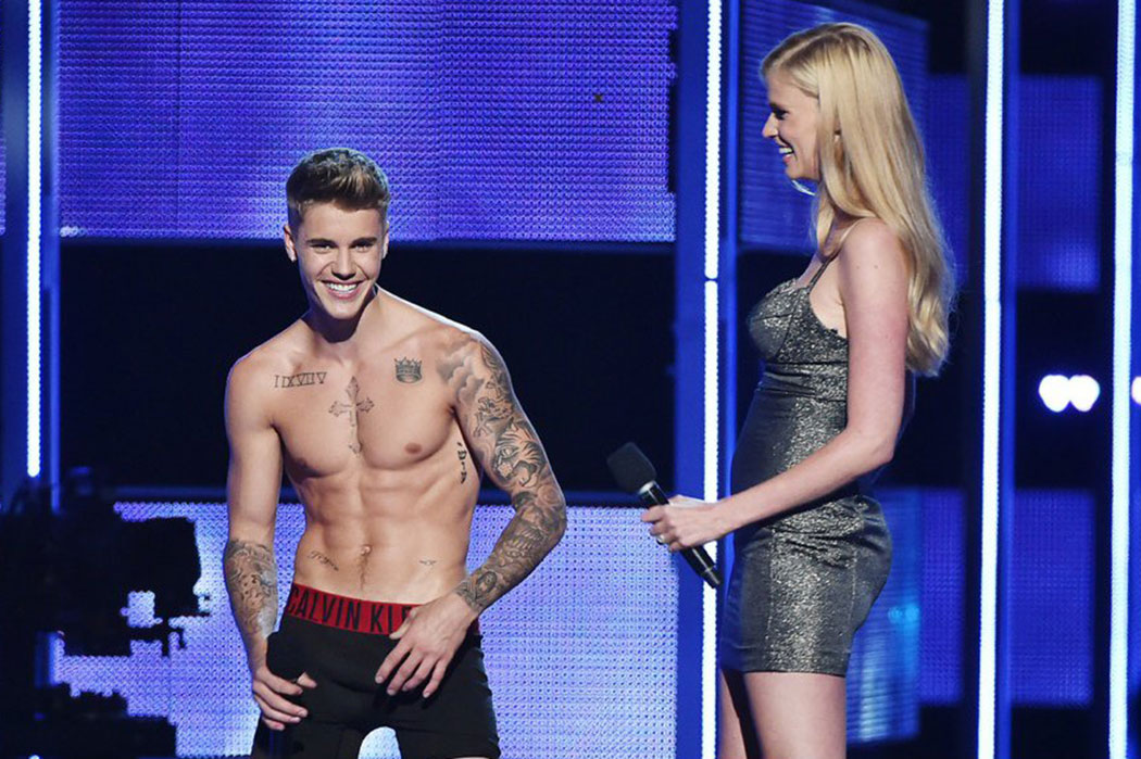美國在這個九月似乎異常的熱鬧,紐約時裝週、Apple 發布會和一年一度的美國時尚搖滾音樂節Fashion Rocks 都排在了此期間,算是各有各的看點。今年Fashion Rocks 上,一直各種醜聞纏身的Justin Bieber 來了一場脫衣秀倒是讓台下觀眾驚叫了起來。 Justin Bieber 攜模特兒Lara Stone 一同登場,一身淡藍色西服造型的Justin Bieber 沒過多久開始脫光外衣,剩下一條黑色的Calvin Klein Underwear。這樣的舉動其實也多少驗證了此前即將代言Calvin Klein 的傳言,而關於廣告部分相信也將會在近期登場。
