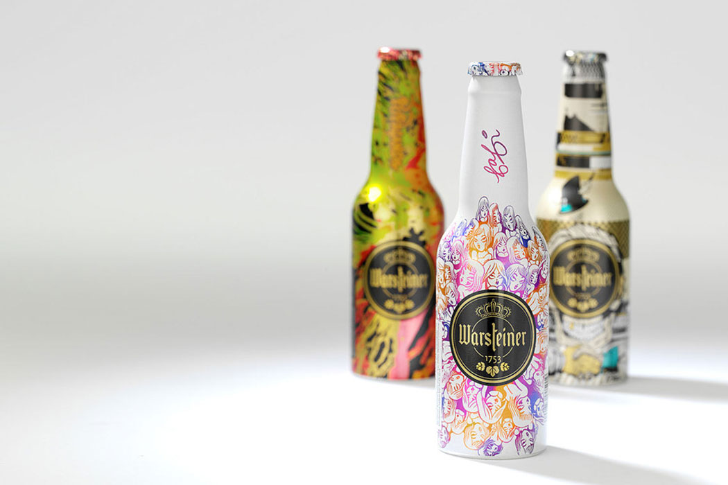 藝術似乎可以滲透進任何一個領域,不僅時尚喜歡和藝術沾邊,就連酒類品牌也是比比皆是。德國啤酒製造商Warsteiner 近年來一直致力於品牌的藝術表現力,繼INSA、123KLAN、Stefan Strumbel 和米蘭時尚設計師Marcelo Burlon 合作後,2014 藝術家合作系列中又增添了Fafi、D*Face、 Kevin Lyons、Ron English、James Jean 和Roids六位藝術家。以鋁製啤酒瓶為原型,藝術家們盡情的展現各自的拿手好戲,一瓶瓶視覺感滿載的瓶身圖案便孕育而生。喜歡收藏的的話大可留意一下。