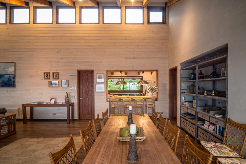 ED House 由建築工作室Eduardo Guzmán Rivera 與Juan Carlos Muñoz Del Sante 合力打造而成,在不遮擋地形的前提下,ED House 沿著維度平行于湖面,房身沿陡峭斜坡而建,並延至湖面而終結。至于內部,可容納兩個家庭入住的空間十分寬敞,以大客廳爲核心,主臥室分別被安置在房子的兩端,另外還設有廚房、酒吧、會議室以及面向湖景的燒烤台。從整體看來,ED House 有著一個精致的木屋型外觀,再加上清新的環境以及怡人的湖景,居住于此簡直是一種享受!