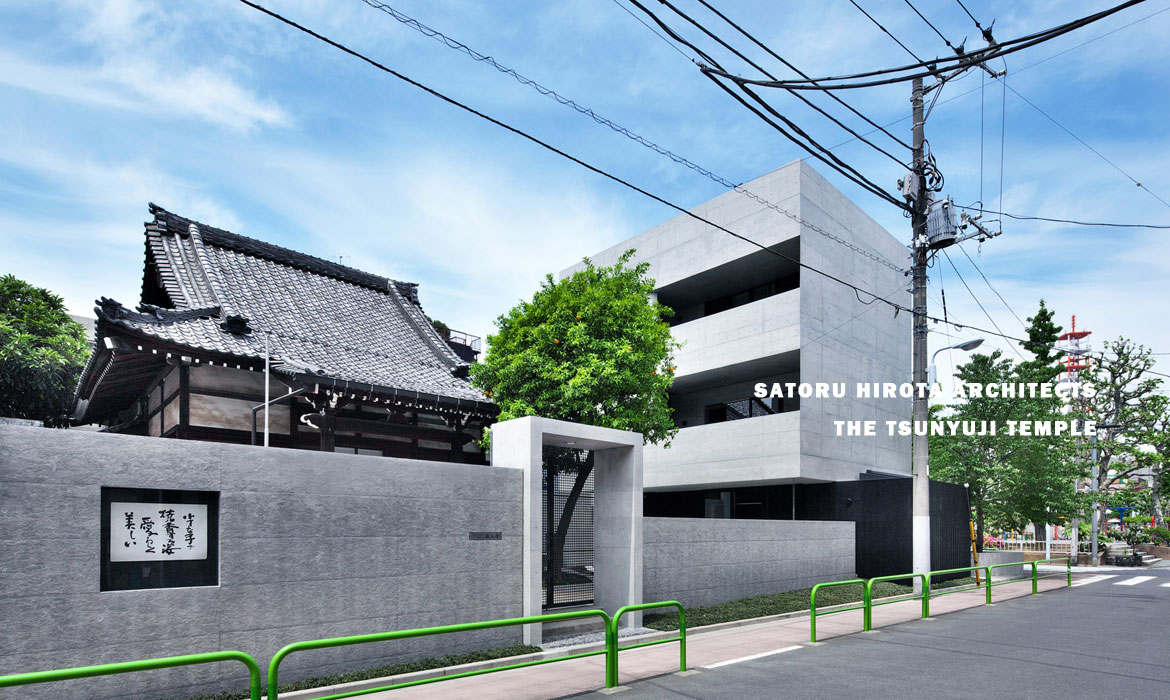 The Tsunyuji temple 占地580 平方米,建造於1603 年與1868 年間,但在第二次世界大戰中空襲被毀,雖在1949 年被重建,但無奈資源有限,並沒有顯著的效果。此次,Satoru Hirota Architects 翻新這座舊建築,並爲其增加了一系列新的設施,諸如三角形接待大廳。建築師旨在還原一個純淨的宗教空間,並且與此同時加入新時代的風格元素。南端的祠堂被精心修複,而西北角的接待大廳也以全新姿態亮相,不但可作爲一個就餐空間,也可用於舉辦講座、研討會、表演和其他活動。原本暴露的混凝土和燒焦的香柏木在此時變成了潔淨的木飾、渲染著奶白色調的地板牆壁瓷磚以及質樸的屋頂,回想歲月曾給它留下的痕迹,不禁令人唏噓。
