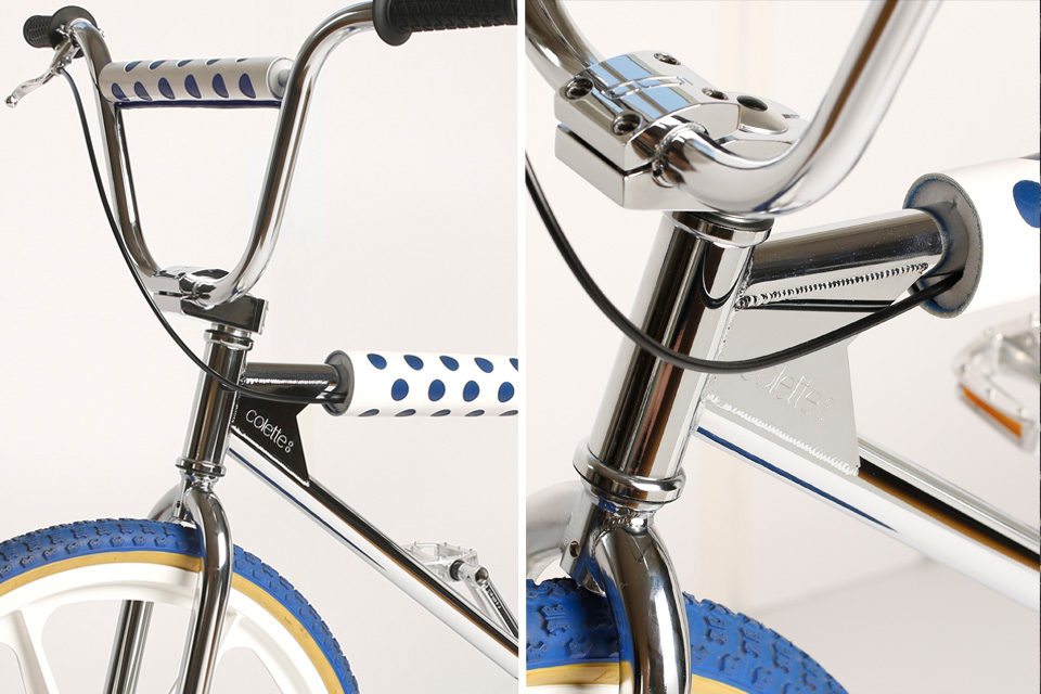 作爲初出茅廬的法國BMX 制造商,Bogarde 日前以一種獨特的方式度過了自己的第一個生日——與法國最爲知名的概念時尚名所Colette 聯手,帶來了一款超獨家的BMX Bike 。這款BMX Bike 以標志性的“Bogarde” model 爲藍本,Colette 標志性的藍白圓點裝飾也出現在了車身以及車把手部位,而優質小牛皮與山羊皮革的加持亦爲整體增添了不少奢華風味。另外Colette 簽名式的標志由巴黎藝術家Toma Pegaz 手工雕刻在車框架之上,至於印有“Bogarde” 字樣的黃色車座,則散發著些許複古味道。據悉目前還暫時沒有價格信息,感興趣的朋友不妨留意後續。