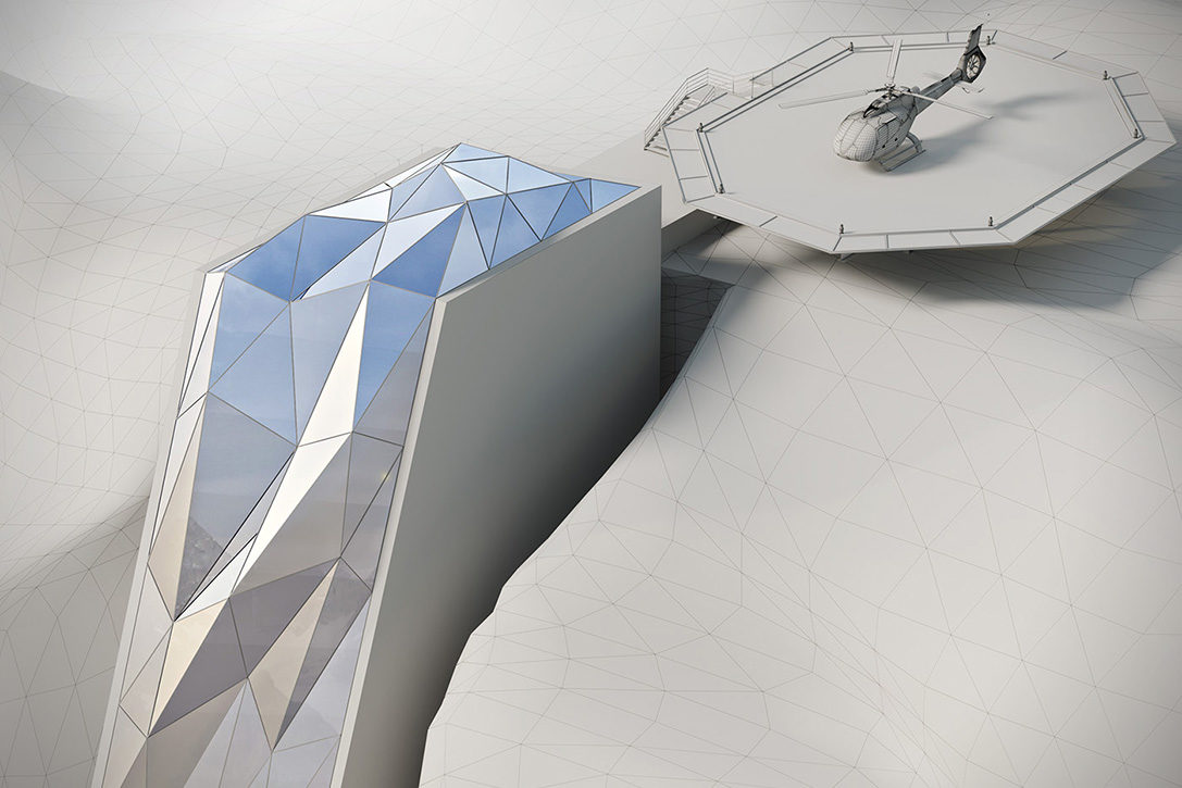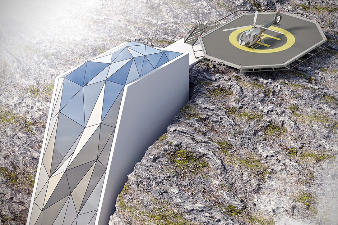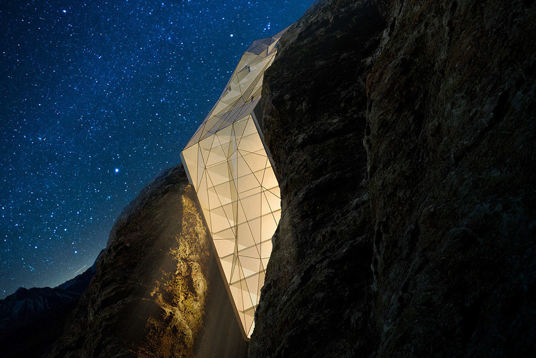 住在位於瑞士阿爾卑斯山雲層之上的酒店,應該是非比尋常的經曆吧?但前提是——你沒有恐高症。設計師Andrii Rozhko 最近設計了一個概念項目:Alps Hotel 。這是一處懸挂在瑞士阿爾卑斯山的酒店,封閉於全玻璃構造中。Alps Hotel 看起來有一種驚心動魄的美,你可以在其中拍攝懸崖的景色,想像一下在遠離地面數千英尺的高空,往下俯瞰是什麽樣的體驗吧!酒店位於懸崖波浪狀表面的人造縫隙內,同時全玻璃外殼也是極具吸引力,有一種James Bond 式的未來科幻感。因爲酒店地處僻靜,僅能通過直升機才能到達,所以在酒店一旁的空地,設置了一個直升機停機坪。