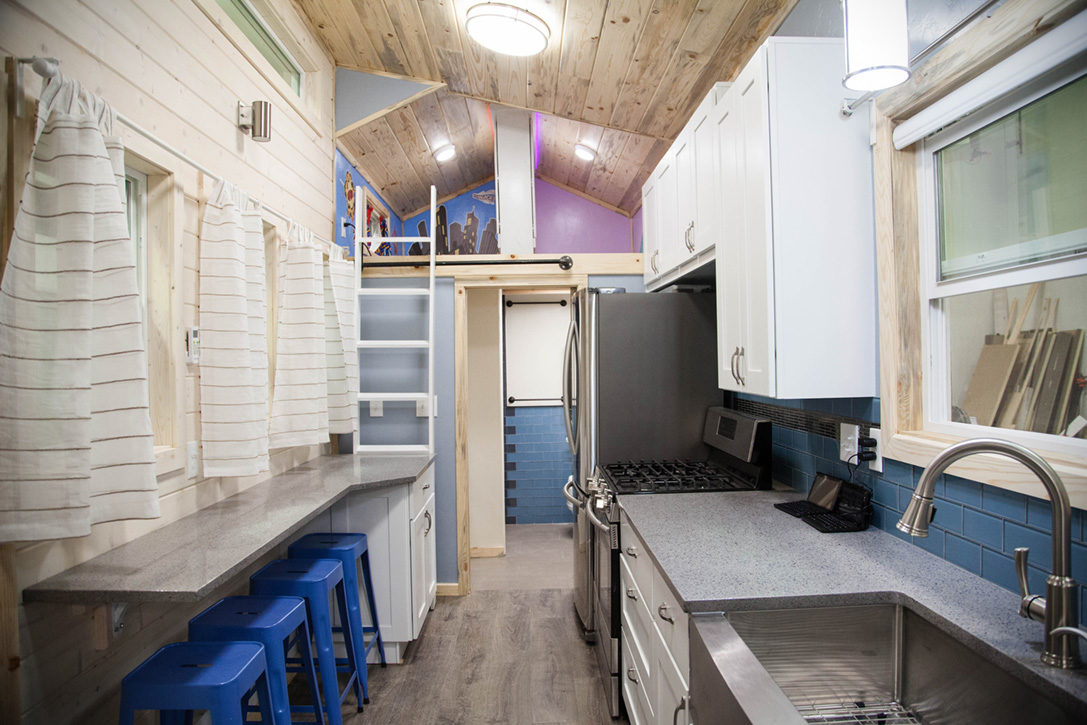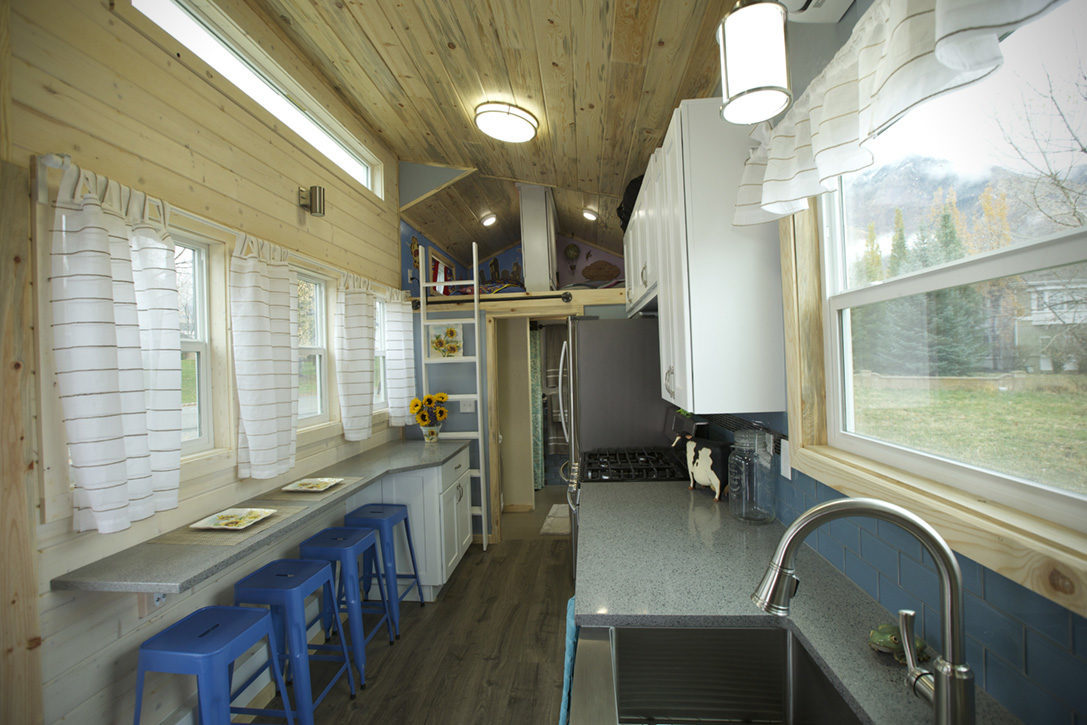 擁有一輛實用又性能強勁的拖車,是每個熱愛野營家庭的追求。如果你正在找尋一輛拖車小屋,由Alpine Tiny Homes 打造的Brown Bear Cabin 似乎是又一個完美的選擇。這個木制小屋面積爲224 平方英尺,整體的設計也是極具原始自然風情,足夠遠離世俗喧囂。Brown Bear Cabin 的外部有一個木制壁板,其上亦搭載有太陽能電池板以及大量窗戶以照亮室內。而在小屋內部,則更像是一個極具吸引力的小家園。標准家庭設施一應俱全,長爲30.5 英尺的內部猶如一個大生活區,擁有一個完整的廚房和浴室,以及兩個閣樓臥室。除此之外,還有太陽能發電結構、定制櫥櫃、廁所以及一個熱水器。所有櫃子都是定制而成,台面由石英制成。整個空間像網格一樣緊湊而井井有條,一點不給人擁擠的感覺。