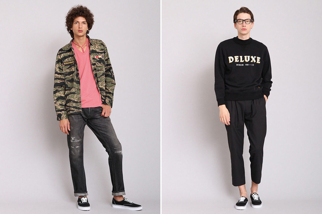 深受70 年代美式風格影響的日本著服品牌Deluxe 最近發表2017 春夏Lookbook 。自誕生以來Deluxe 的風格就始終如一,除了深受美系文化與日本流行文化影響外,英式浪漫主義情懷以及部落文化中的異國元素亦是Deluxe 的靈感發源。這一季的男裝繼續在多元化的領域探索,而整體除了一股撲面而來的男子氣息外,還有深埋在細節中的豐富玩味感。Deluxe 的出色品質一如既往,而設計師也是不遺余力,嘗試用更加廣泛的設計元素去勾勒率性輪廓,這一組服飾的誘惑力可見一斑。本次釋放的單品包括夾克、襯衫、T 恤、帽衫、長褲、短褲、配件等,敬請參考。