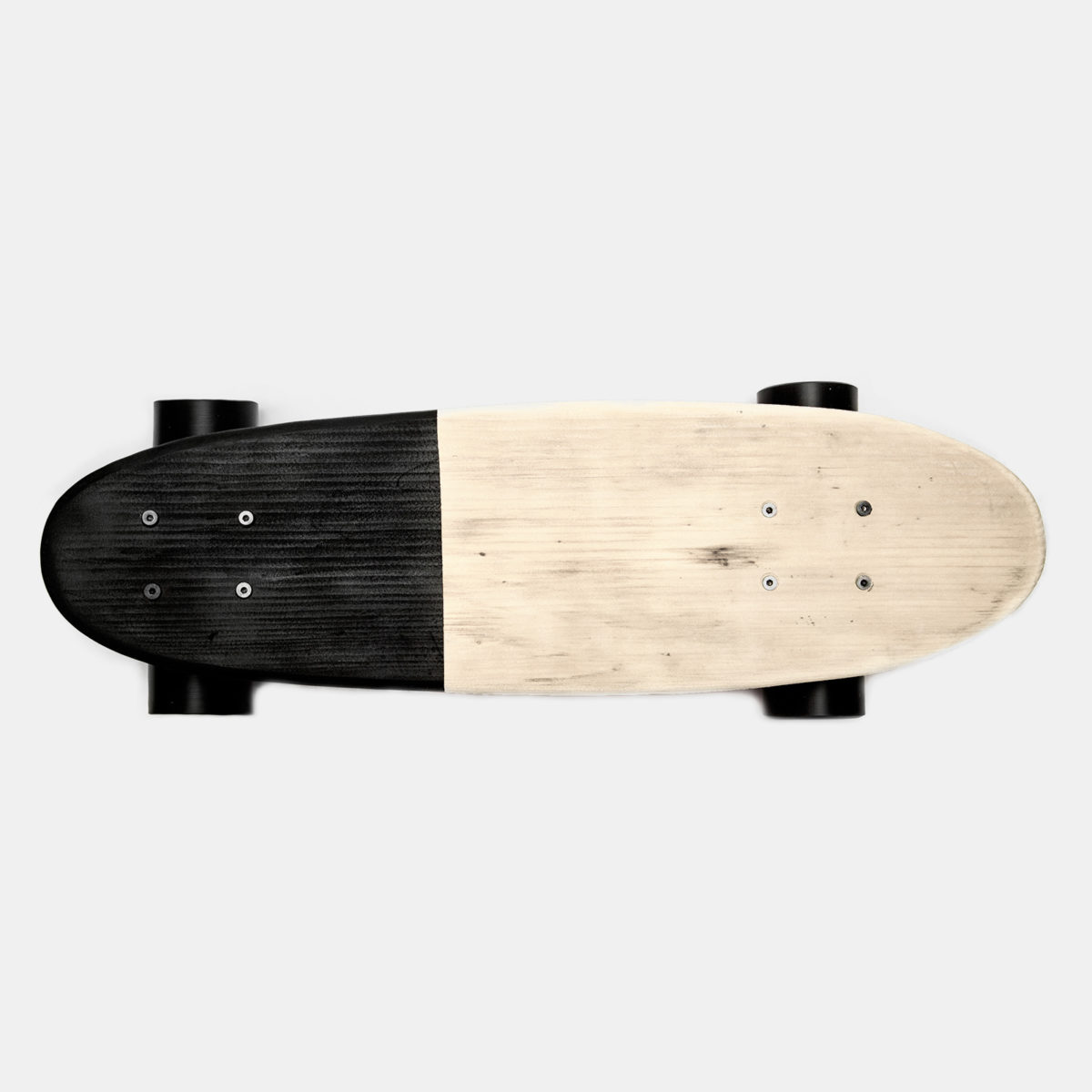 除了全黑的款式以外,這次推出的 Cruiser Skateboard 也包含了露出一半木材原色的選項,讓 hipster 們也能在滑板界找到自己的聲音,安放他們那渾然天成的自然氛圍。