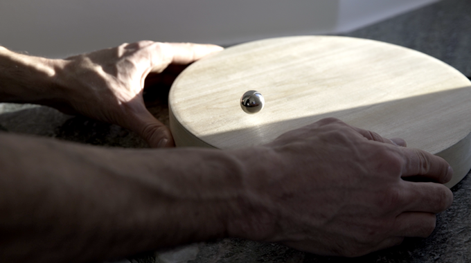 具有典型北歐設計感的極簡外觀,採用全實木的錶盤設計,上面還有浮動著的金屬球作為指針。最與眾不同的當屬這個一通電就浮在表面的金屬小球,就像充滿魔法一般。不僅可以掛在牆上,還可以平放或者斜放,都不會影響到正常工作。除此之外,還有隱藏的發光電子屏在木製錶盤上。金屬球除了可以做分針秒針,還可以設置成旅程模式或者倒計時模式,時鐘背面還會散發出溫柔的呼吸燈,並且能模仿月相的變化。